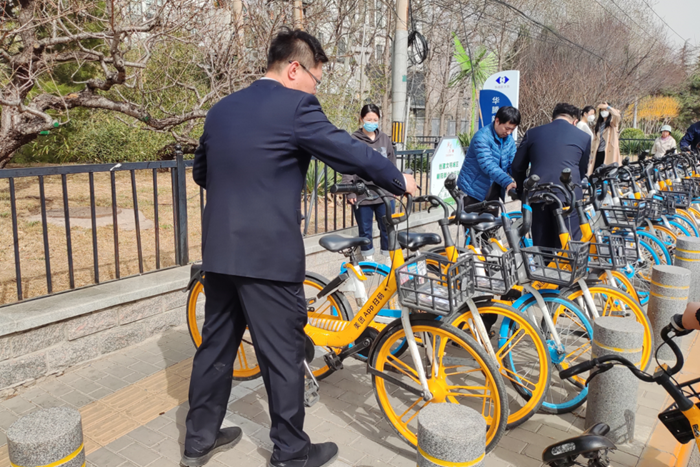團(tuán)員青年們來到華騰新天地商場南門,將雜亂停放的共享單車擺放整齊,并引導(dǎo)前來停放共享單車的人們規(guī)范停放,優(yōu)化商場的周邊環(huán)境,避免商場周邊因?yàn)殡S意停車造成的交通混亂和安全隱患。