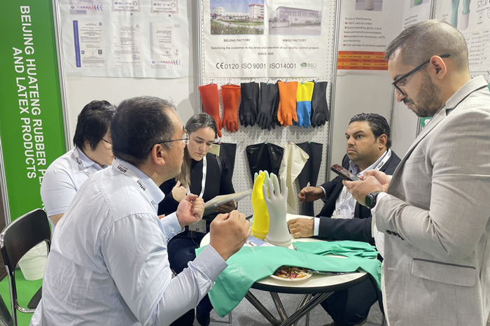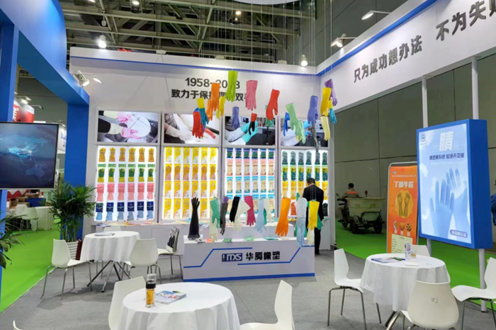 新的LOGO不僅展示著企業(yè)新形象,更昭示著華騰橡塑融入國內(nèi)大循環(huán)、國內(nèi)國際雙循環(huán)的雄心。10月15日,華騰橡塑銷售團(tuán)隊(duì)專程來到廣州,參加第134屆中國進(jìn)出口商品交易會(huì)(廣交會(huì)),在“工具展區(qū)”和“新材料及化工產(chǎn)品展區(qū)”架設(shè)兩大展位,全面推銷橡塑乳膠手套產(chǎn)品和膠板產(chǎn)品。在手套產(chǎn)品展位,展示了公司的家用手套和工業(yè)用手套。多種材質(zhì)、用途可以充分滿足客戶的不同需求。公司自主研發(fā)的絕緣手套和干箱手套備受觀眾關(guān)注;在膠板產(chǎn)品展位,展示了工業(yè)、牧場、運(yùn)動(dòng)等系列膠板產(chǎn)品,花型種類豐富,可滿足多種場合的應(yīng)用需求。