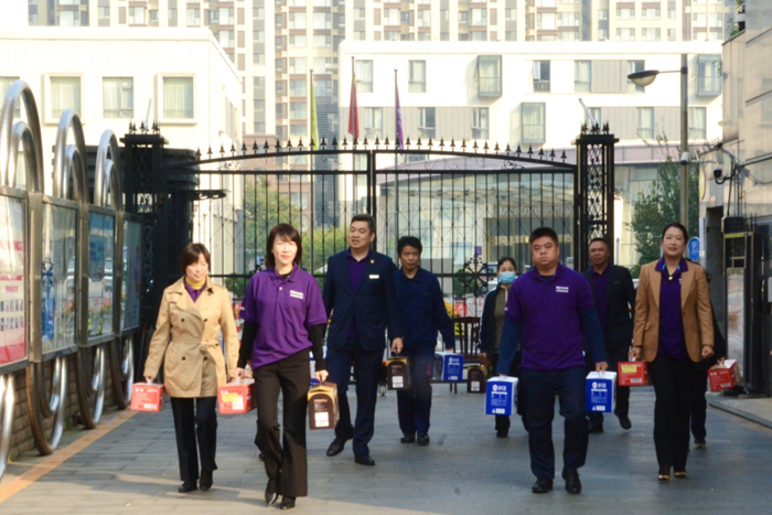 華騰美居酒店業(yè)主代表趙麗霞帶領管理團隊走進大望社區(qū),為老人們送上牛奶、燕麥、面條等慰問品,將濃濃的關愛和重陽節(jié)的祝福送到老人面前。
