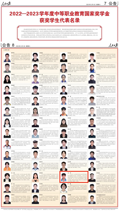 5月4日、5日,《人民日報(bào)》專版刊登了100名研究生國家獎學(xué)金獲獎學(xué)生優(yōu)秀代表、100名本專科生國家獎學(xué)金獲獎學(xué)生優(yōu)秀代表、100名中等職業(yè)教育國家獎學(xué)金獲獎學(xué)生優(yōu)秀代表名錄。北京市工業(yè)技師學(xué)院環(huán)保與生物制藥系2021級環(huán)境保護(hù)與檢測專業(yè)學(xué)生王珂,榜上有名。