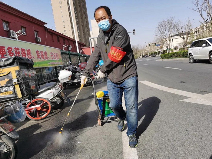 社區防疫值守工作是我們國家疫情防控的重要手段之一,消殺工作也是對社區值守人員、進出居民健康防疫保障的有效舉措。為了保證消毒效果,我每天到崗后,都會第一時間進行消殺。小到社區出入口的消毒腳墊,大到返京人員必經的登記崗亭都是定期消殺的重點區域。還有卡口執勤地面,乃至外賣電動車的停放區我都要讓我的“戰友”光顧一遍。