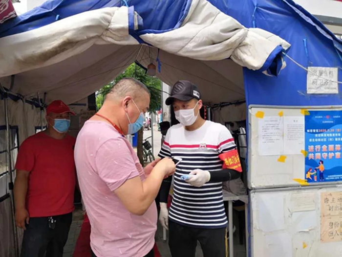 在疫情爆發(fā)后,我主動報名加入到北化集團下沉社區(qū)的防疫工作中,負責村子卡口測溫、登記等進出管控,像是一扇大門,保護著村莊的防疫安全,手中的槍換成了測溫槍,但一樣是為了保衛(wèi)人民,守衛(wèi)老百姓的安全和健康,不一樣的崗位,不一樣的身份,但我踐行著一樣的使命!