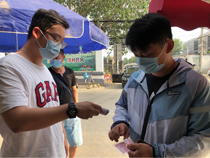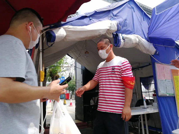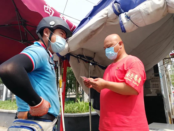 再次回到熟悉的崗位,再次見到熟悉的面孔,再次聽到熟悉的聲音,我更加明確自己肩負(fù)的責(zé)任與使命,沒有什么比健康更重要的了,為了大家的健康,我要實實在在做好村里疫情防控工作。根據(jù)村委會要求,做過核酸檢測的人員需要居家觀察14天,在此期間,我們需要每天上、下午巡村,一個人負(fù)責(zé)測量體溫、一個人負(fù)責(zé)記錄、一個人負(fù)責(zé)發(fā)放“承諾書”等文件并收回、一個人負(fù)責(zé)收出入證,村委會人員負(fù)責(zé)解釋并說明。炎炎夏日,每天頂著大太陽在村里忙活,眼睛因為流汗過多經(jīng)常浮腫,回家后全身酸痛,想想自己的責(zé)任與使命,第二天依舊精神飽滿的上崗。在我們齊心協(xié)力下,振亞莊至今無病例,相信我們采取的措施將有效控制并最終戰(zhàn)勝疫情!