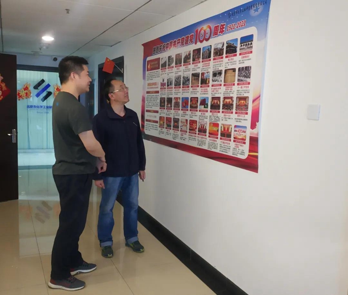 黨史學(xué)習(xí)教育深入開展以來,化研院在自己的官方微信公眾號上開辟“每周一學(xué)一答”活動專欄,使干部職工在公眾號上每次完成相關(guān)黨史知識學(xué)習(xí)后,再完成5道答題,以引領(lǐng)黨員干部職工學(xué)黨史、悟思想,積極營造學(xué)習(xí)黨史的濃厚氛圍。此外,化研院黨總支在華騰科技大廈五層張貼“黨的百年歷史簡圖”,營造學(xué)習(xí)黨史濃厚氛圍。