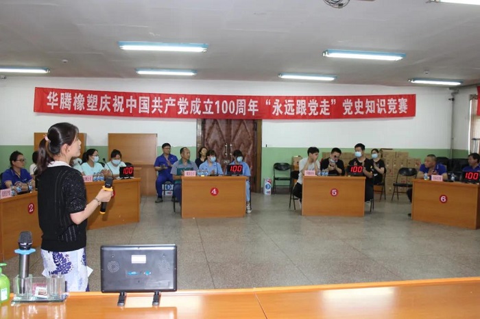6月22日,華騰橡塑公司黨委舉辦“永遠跟黨走”黨史知識競賽。活動旨在以賽促學(xué),以學(xué)促干,激勵廣大黨員干部滿懷信心邁進建設(shè)行業(yè)領(lǐng)先的科技創(chuàng)新型企業(yè)新征程。此次競賽共有8個黨支部組隊參加。各黨支部書記、支部委員、入黨積極分子、共青團員、群眾代表參加活動,并參與觀眾答題環(huán)節(jié)。