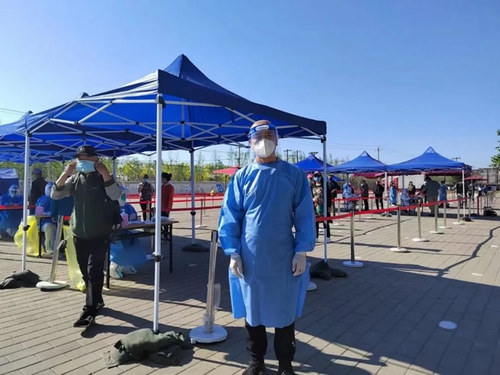 5月16日早上7點半, 我提前半小時來到通州區中倉社區報到,因為第一次參與到核酸檢測工作,還比較忐忑,不知道自己能否干好。在與社區負責人對接后,進行了簡單的崗前培訓,跟隨著大家一起布置場地,在社區工作人員的耐心指導下,從開始時維持秩序、保障綠色通道這樣簡單的工作,到后來我已經能夠獨立完成身份信息采集、對所采集的樣品進行開箱和封箱、幫助檢測替換下來的醫生進行消毒,并在檢測完成后收集場地內的物品,清理、消毒醫療垃圾等諸多工作,一系列工作我一氣呵成,他們都夸我是“檢測小能手”。