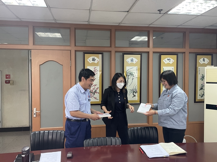 專班同志為企業(yè)負責(zé)人送上《中國共產(chǎn)黨紀律處分條例》(簡明讀本)一書。