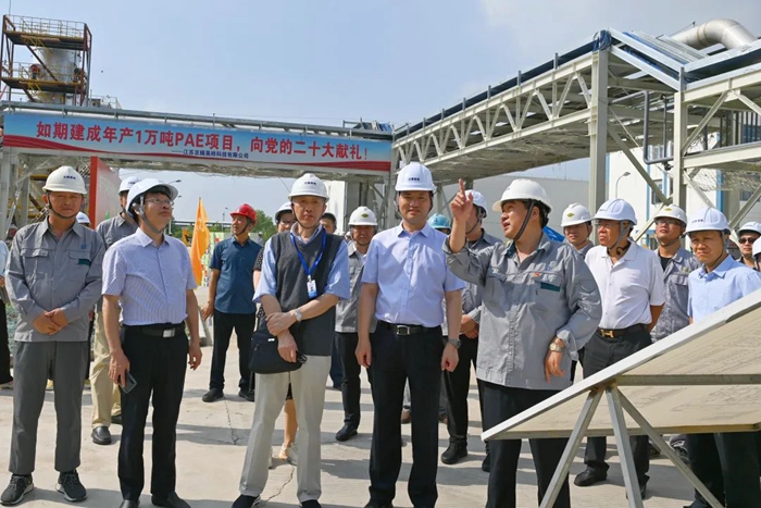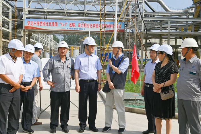 月19日,董事會一行來到江蘇京騰昊樺公司,現場考察年產1萬噸聚芳醚樹脂(PAE)項目建設情況。PAE項目是國家強基工程項目,是北京化工集團推進“3+1”業務的重要載體,是集團年度40項重點任務之一。