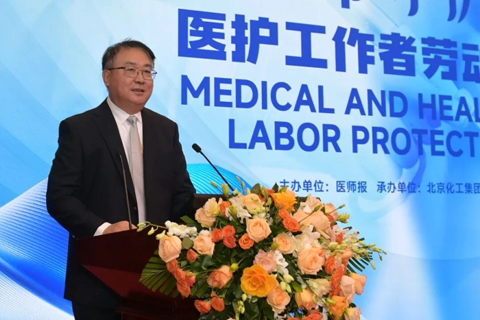 陳宇在致辭中表示,作為市屬國企,北京化工集團長期致力于首都城市運行和重點產(chǎn)業(yè)發(fā)展。為醫(yī)護工作者營造更加安全安心的工作環(huán)境,是企業(yè)社會的共同責任。北京化工集團將全力支持北京瑞京公司等所屬企業(yè),積極攜手行業(yè)專家、醫(yī)療單位、合作伙伴,共同推動防護技術與產(chǎn)品的迭代升級,以應對臨床實踐中不斷出現(xiàn)的新挑戰(zhàn),促進醫(yī)護勞動保護標準的提升與普及,惠及更廣泛的醫(yī)療機構和醫(yī)護群體,營造全社會關心支持醫(yī)護工作者的良好氛圍。