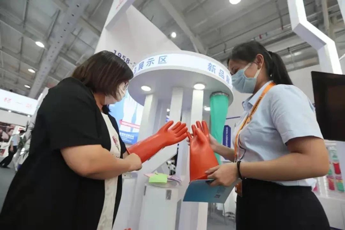 華騰橡塑公司立足本次服貿會,向世界市場宣傳其高質量的自主品牌產品,并為公司新發展階段研發的新產品開拓更廣闊的市場,提高雪蓮品牌的國際知名度和影響力,助力國際經濟的復蘇與發展。展會期間,無論是橡塑公司已經有相當市場基礎的老產品還是新研發的產品,都得到了參展客戶及觀眾的廣泛關注,特別是絕緣手套、干箱手套、丁腈手套等產品更引起了參會客商和觀眾的濃厚興趣,提升了產品的市場關注度。