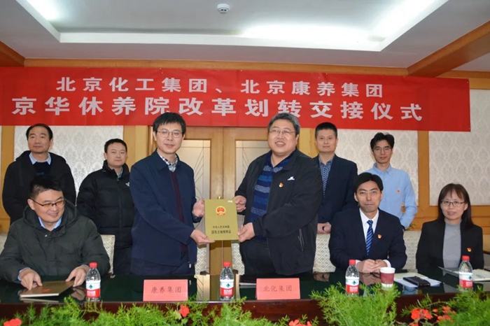 北京康養(yǎng)集團(tuán)副總經(jīng)理秦有明、副總會(huì)計(jì)師秦磊,北京化工集團(tuán)北化房地產(chǎn)公司黨總支書記、董事長(zhǎng)高振宇,集團(tuán)相關(guān)部室負(fù)責(zé)人出席交接儀式。北京化工集團(tuán)與康養(yǎng)集團(tuán)代表在劃轉(zhuǎn)資產(chǎn)及有關(guān)資料清單上簽字,雙方還與自愿安置到康養(yǎng)集團(tuán)的職工簽署了新的勞動(dòng)合同。
