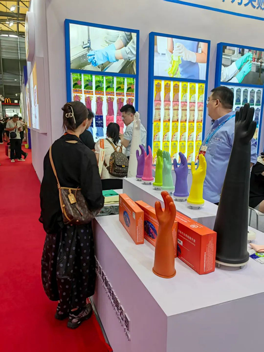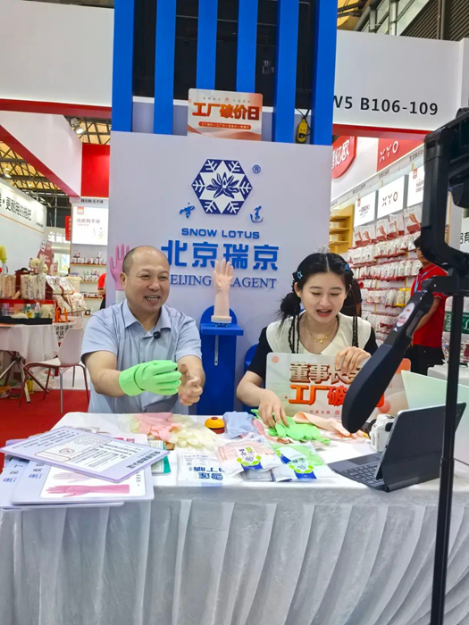通過現(xiàn)場試用體驗(yàn)、功能演示等互動(dòng)環(huán)節(jié),瑞京公司人員向觀眾直觀呈現(xiàn)出產(chǎn)品的舒適性和防護(hù)性能,吸引了眾多客商駐足咨詢。公司產(chǎn)品獲得現(xiàn)場觀眾的一致好評,同時(shí)進(jìn)一步鞏固了瑞京公司在乳膠手套領(lǐng)域的品牌影響力。